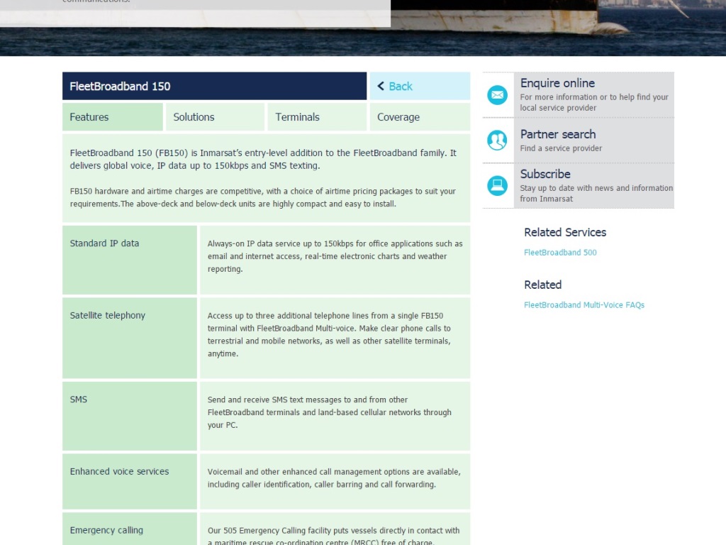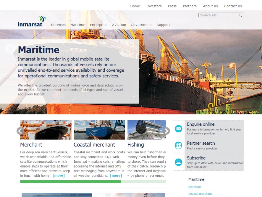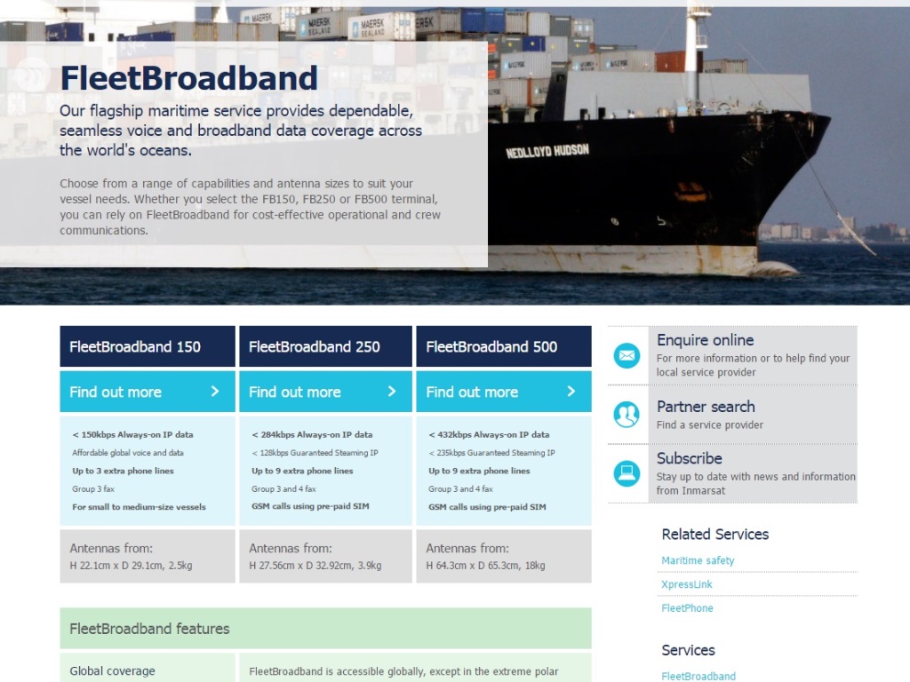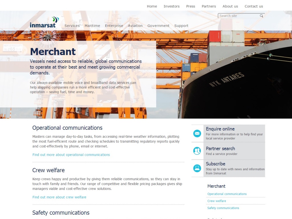 Incorporated into the site is a Ships Directory (which provides near real time reports of all the vessels in the oceans), an extensive FAQ and support section for Inmarsat’s products and services and an exhaustive list of industry partners.